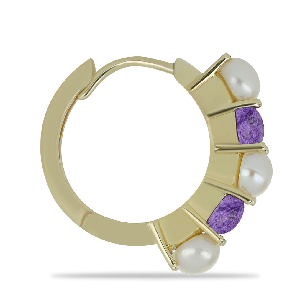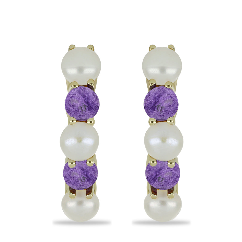 Pozlátené Strieborné Náušnice s Čaroitom a so Sladkovodnou Bielou Perlou
