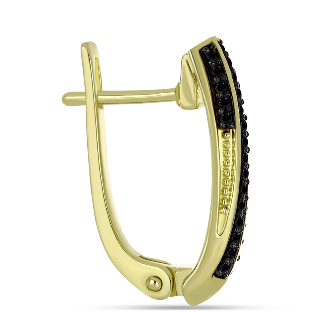 Pozlátené Strieborné Náušnice s Čiernym Spinelom - Karátové číslo: 0.57, hmotnosť: 5.61 gramov KÓD: Y58859 Veľkosť šperku: 22.96 mm x 5.30 mm Zapínanie náušníc: Ruský patent