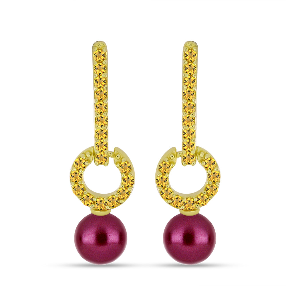 Pozlátené Strieborné Náušnice s so Fialová Sladkovodnou Perlou a Uralským Citrínom