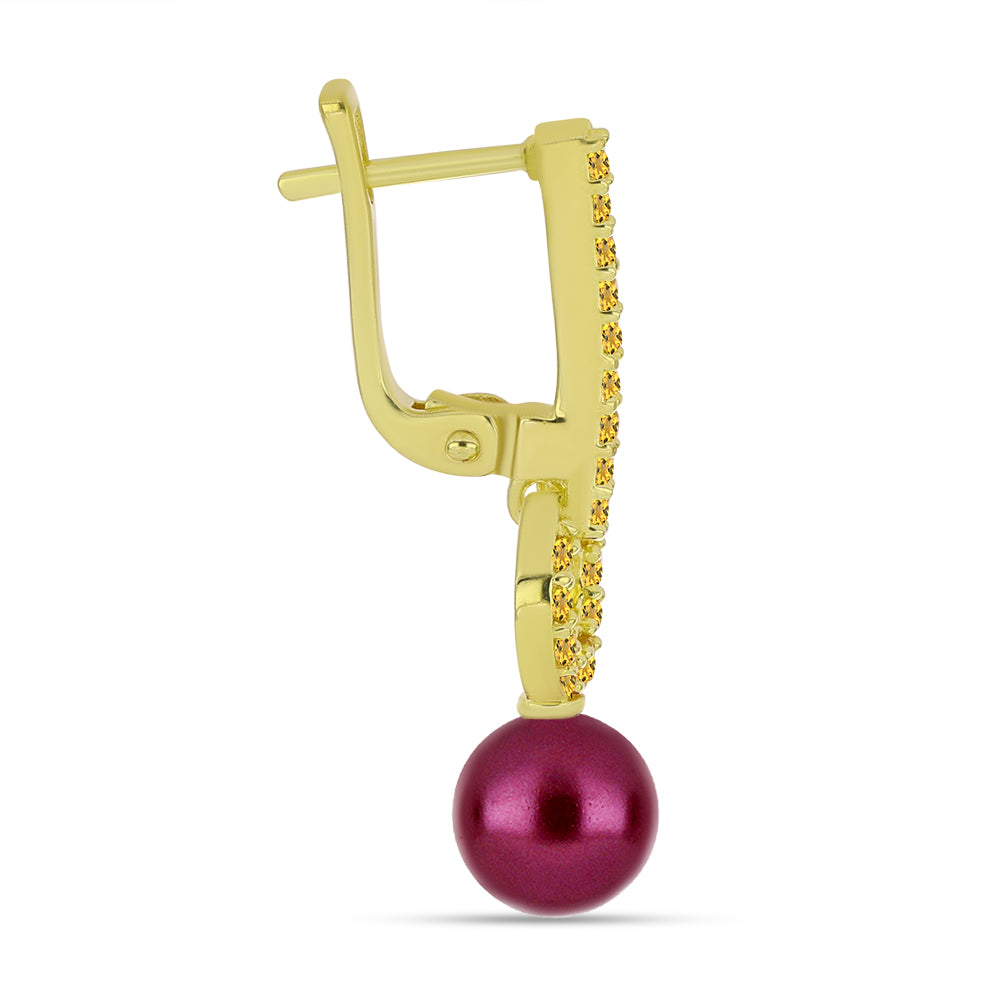 Pozlátené Strieborné Náušnice s so Fialová Sladkovodnou Perlou a Uralským Citrínom - Karátové číslo: 6.58, hmotnosť: 4.55 gramov KÓD: Y58935 Veľkosť šperku: 32.35 mm x 8.80 mm Zapínanie náušníc: Ruský patent