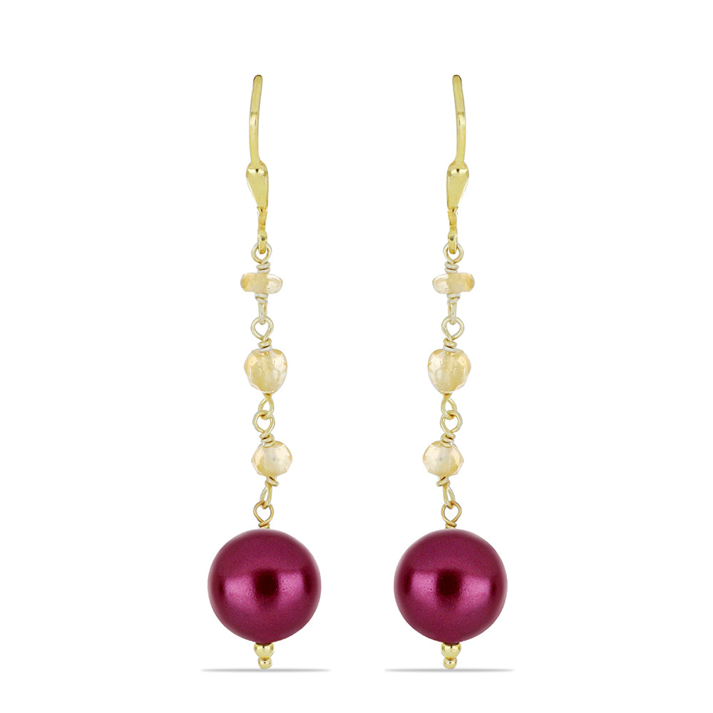 Pozlátené Strieborné Náušnice s so Fialová Sladkovodnou Perlou a Uralským Citrínom