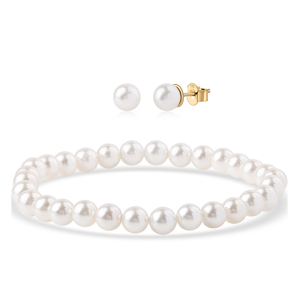 Pozlátené Strieborné Sada s Bielou Sladkovodnou Perlou ( Náušnice+Náramok )