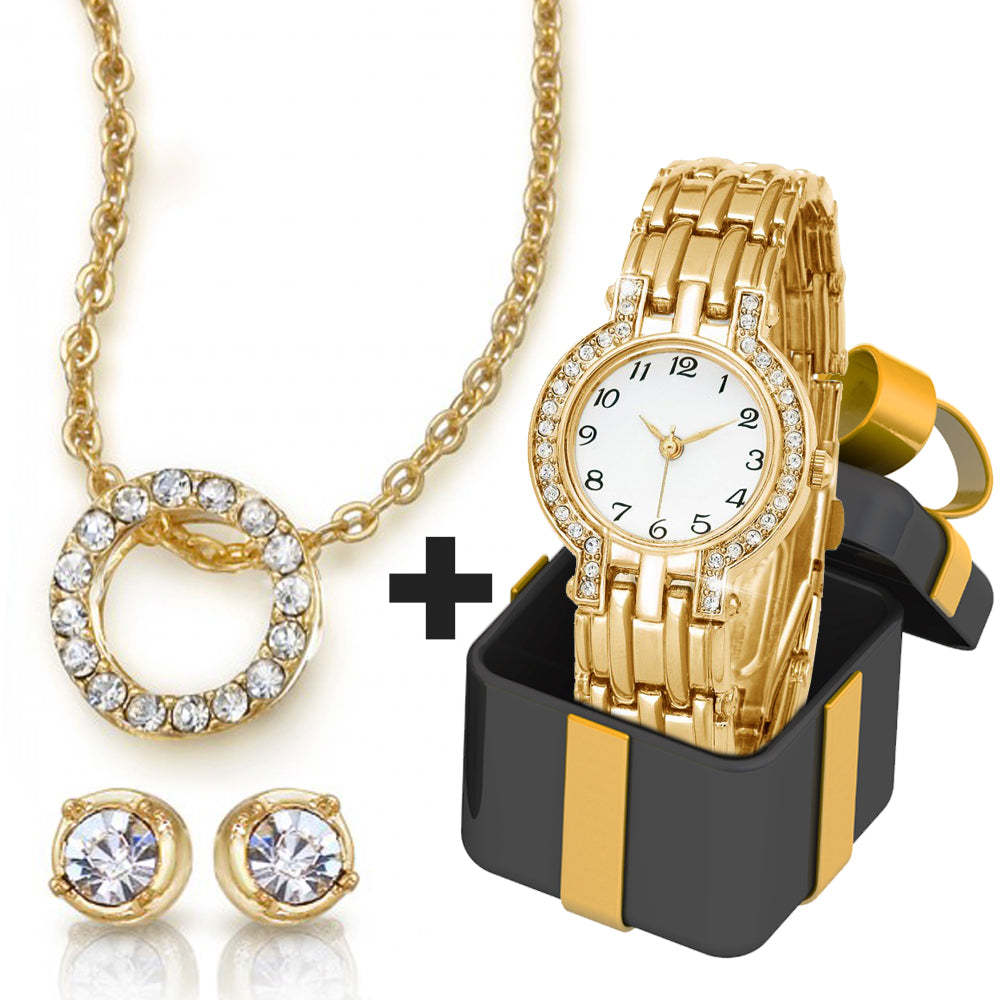 Pozlátené Zliatinové Sada s Bielym Emporia® Krištáľom ( Náhrdelník+Náušnice )