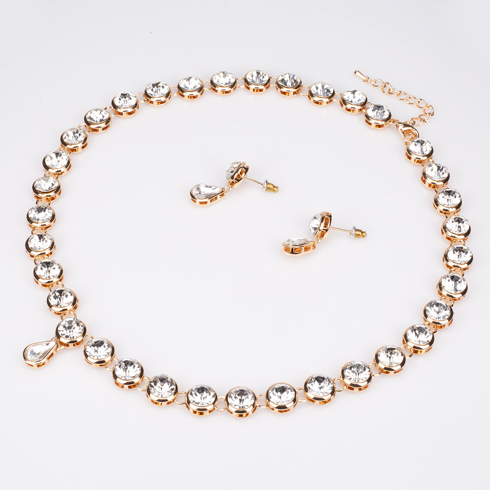 Pozlátené Zliatinové Sada s Bielym Emporia® Krištáľom ( Náhrdelník+Náušnice )