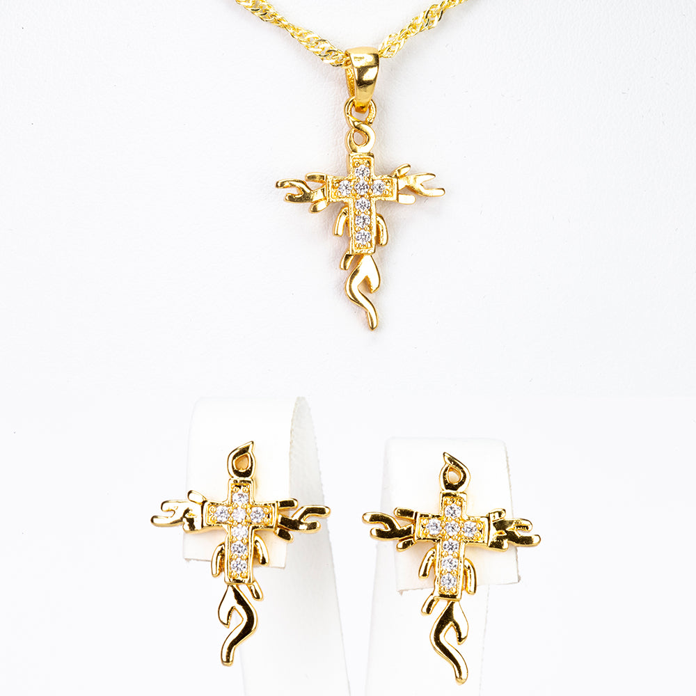 Pozlátené Zliatinové Sada s Bielym Emporia® Krištáľom ( Náhrdelník+Náušnice+Prívesok ) hmotnosť: 7.53 gramov KÓD: 34336