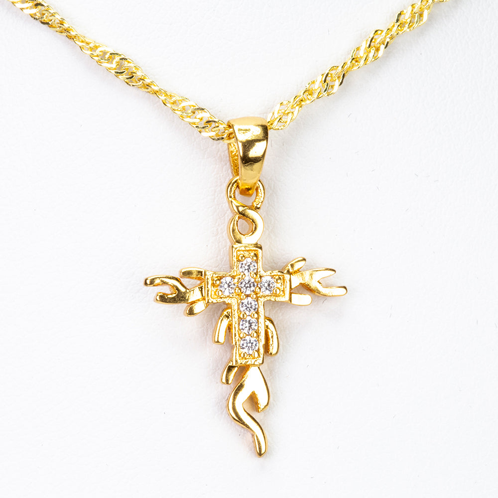 Pozlátené, módne, zliatinové šperky. Nie sú antialergénne. Venujte zvláštnu pozornosť, nevystavujte svoje módne šperky vode. Ak sú používané a skladované správne, uchovávajú si svoju perfektnú kvalitu po celé mesiace! Skladujte na mieste s nízkou vlhkosťou. Kondenzovanú vlhkosť utierajte niekoľkokrát týždenne čistou mäkkou handričkou. Nenoste šperky, keď spíte, kúpete sa alebo cvičíte. V prípade kontaktu s potom alebo nadmerným trením sa môže farba módnych šperkov zmeniť.