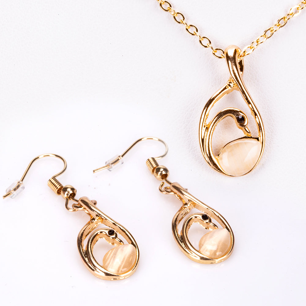 Pozlátené Zliatinové Sada s Bielym Emporia® Krištáľom ( Náhrdelník+Náušnice+Prívesok )
