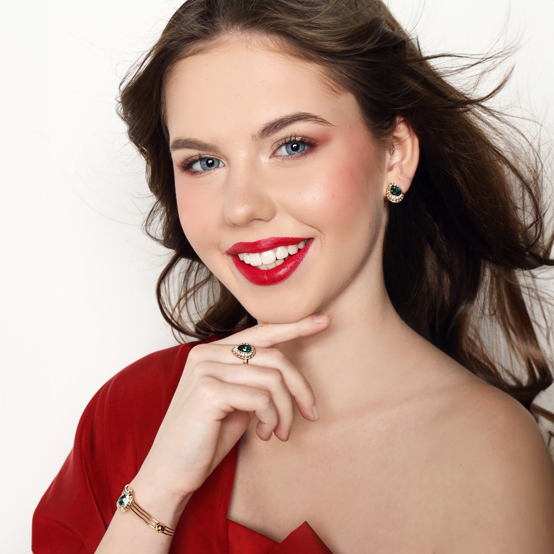 Pozlátené Zliatinové Sada s so Zeleným Emporia® Krištáľom ( Náhrdelník+Náušnice+Náramok+Prsteň +Prívesok )