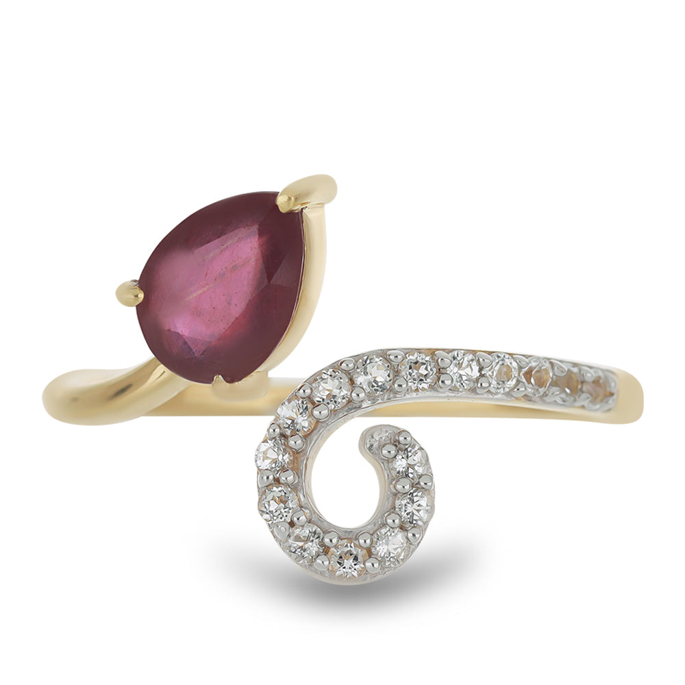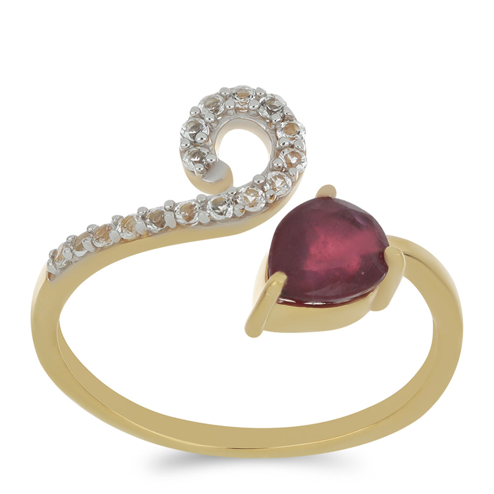 Pozlátený Strieborný Prsteň - Karátové číslo: 1.82, s Madagaskarským Rubínom a Bielym Topásom hmotnosť: 2.5 gramov KÓD: Y52887 Veľkosť šperku: 18.13 mm x 22.68 mm