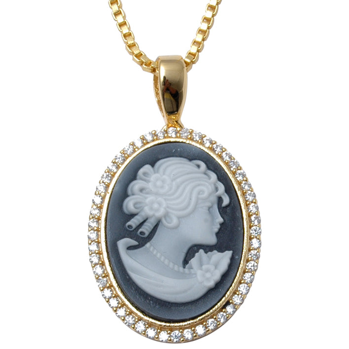 Pozlátený Zliatinový Cameo Prívesok Čierna s Emporia Krištáľom KÓD: 4545