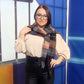 Šál zo 100% Pravé Vlny, 30 cm x 180 cm, Čierny, Šedý a Broskyňový kockovaný vzor