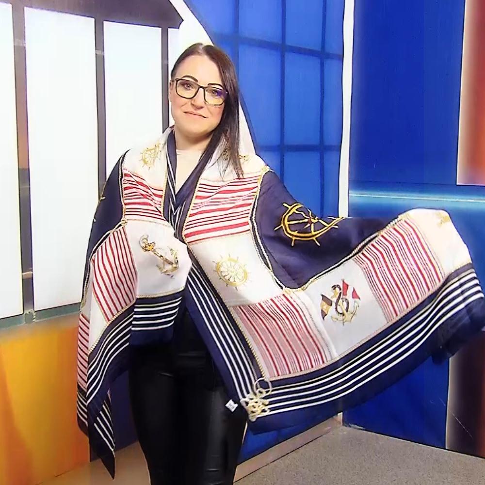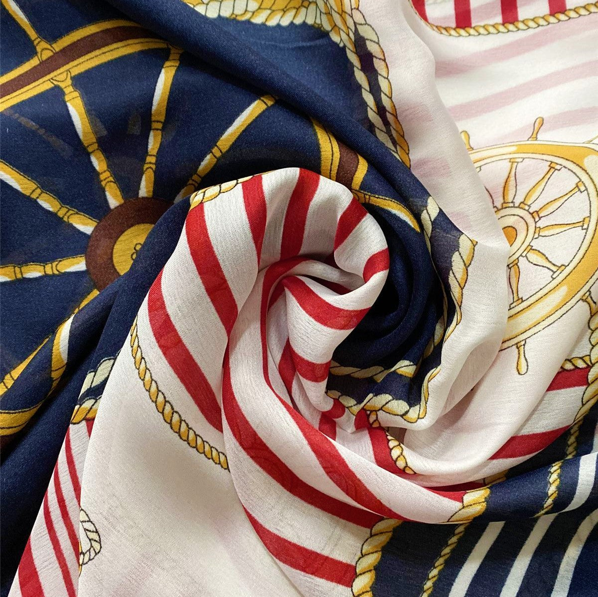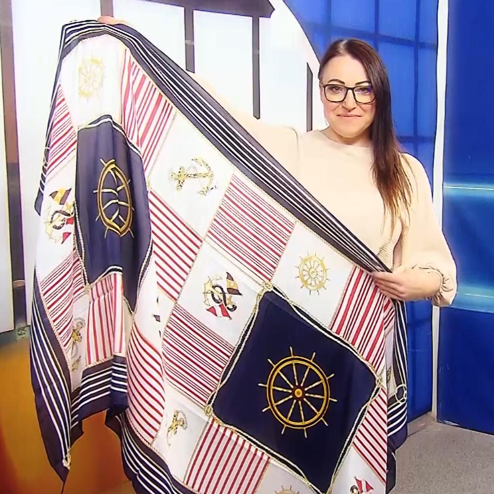 Rozmery: 90 cm x 180 cmMateriál: 50% Hodváb, 50% ViskózaFarba/vzor: kormidlo a kotva