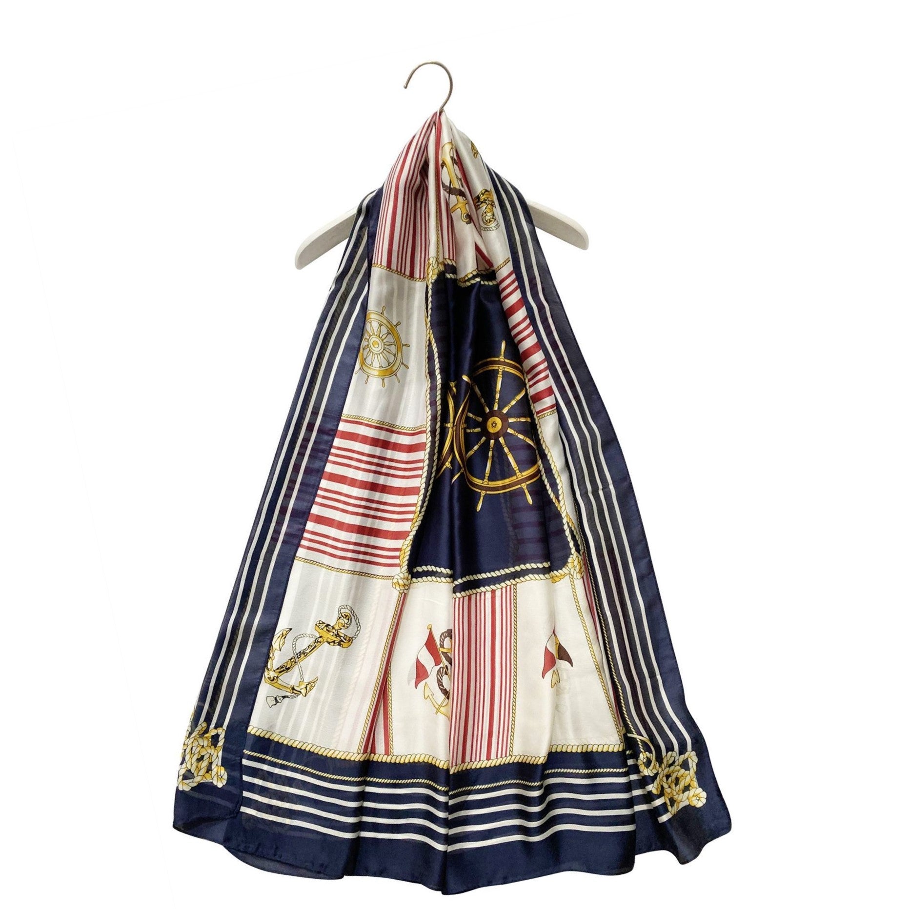 Hodvábny Šál-šatka, 90 cm x 180 cm, Vzor - kormidlo a kotva