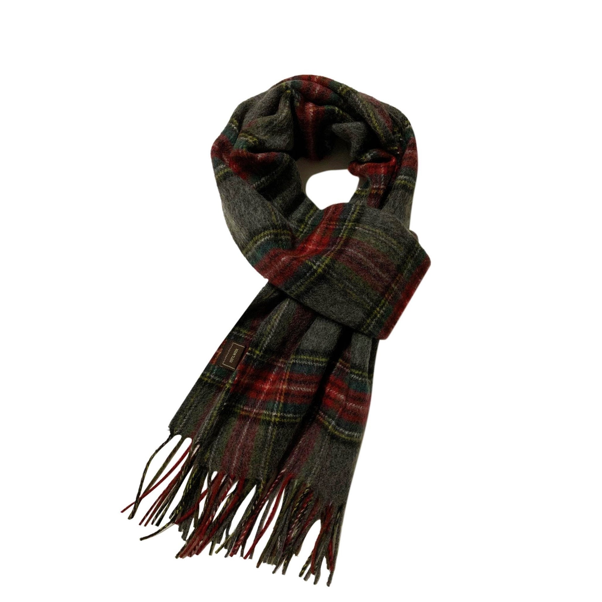 Šál zo 100% Pravé Vlny, 30 cm x 165 cm, Vínový a šedozelený vzor