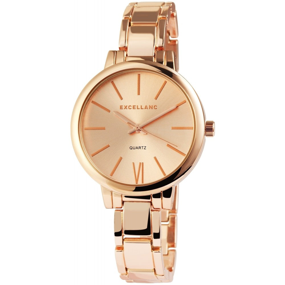 Dámske hodinky Excellanc s kovovým remienkom, farba ružového zlata, kvalitný quartzový mechanizmus, ciferník z ružového zlata, 19 cm
