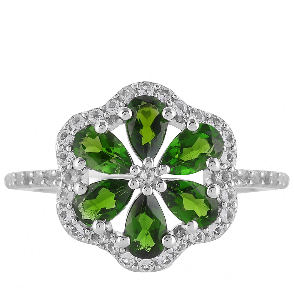 Strieborný Prsteň - Karátové číslo: 1.52, s Chrom Diopsidom a Bielym Topásom hmotnosť: 2.79 gramov KÓD: PCY11067